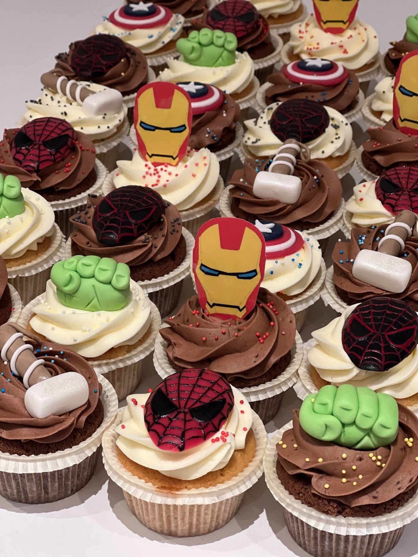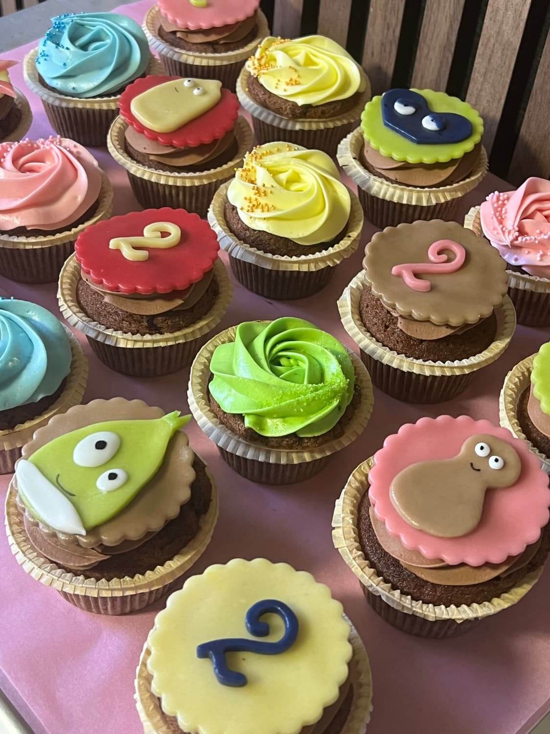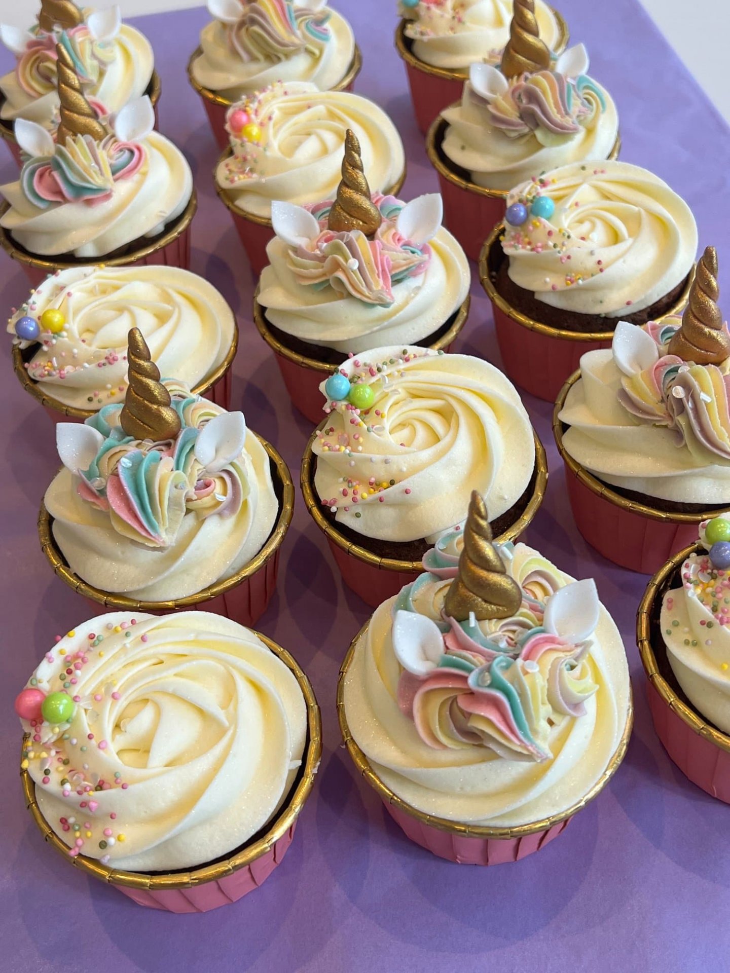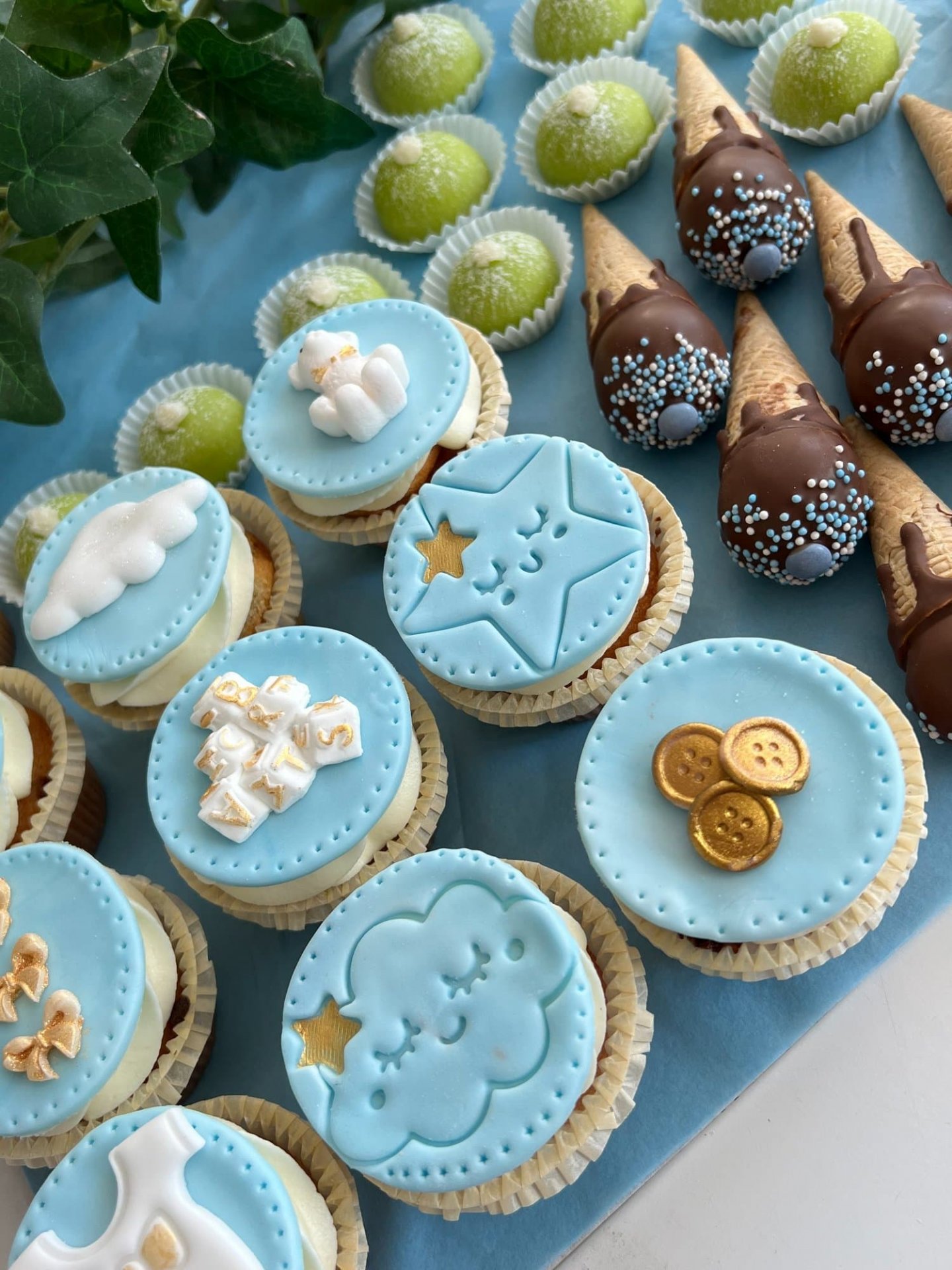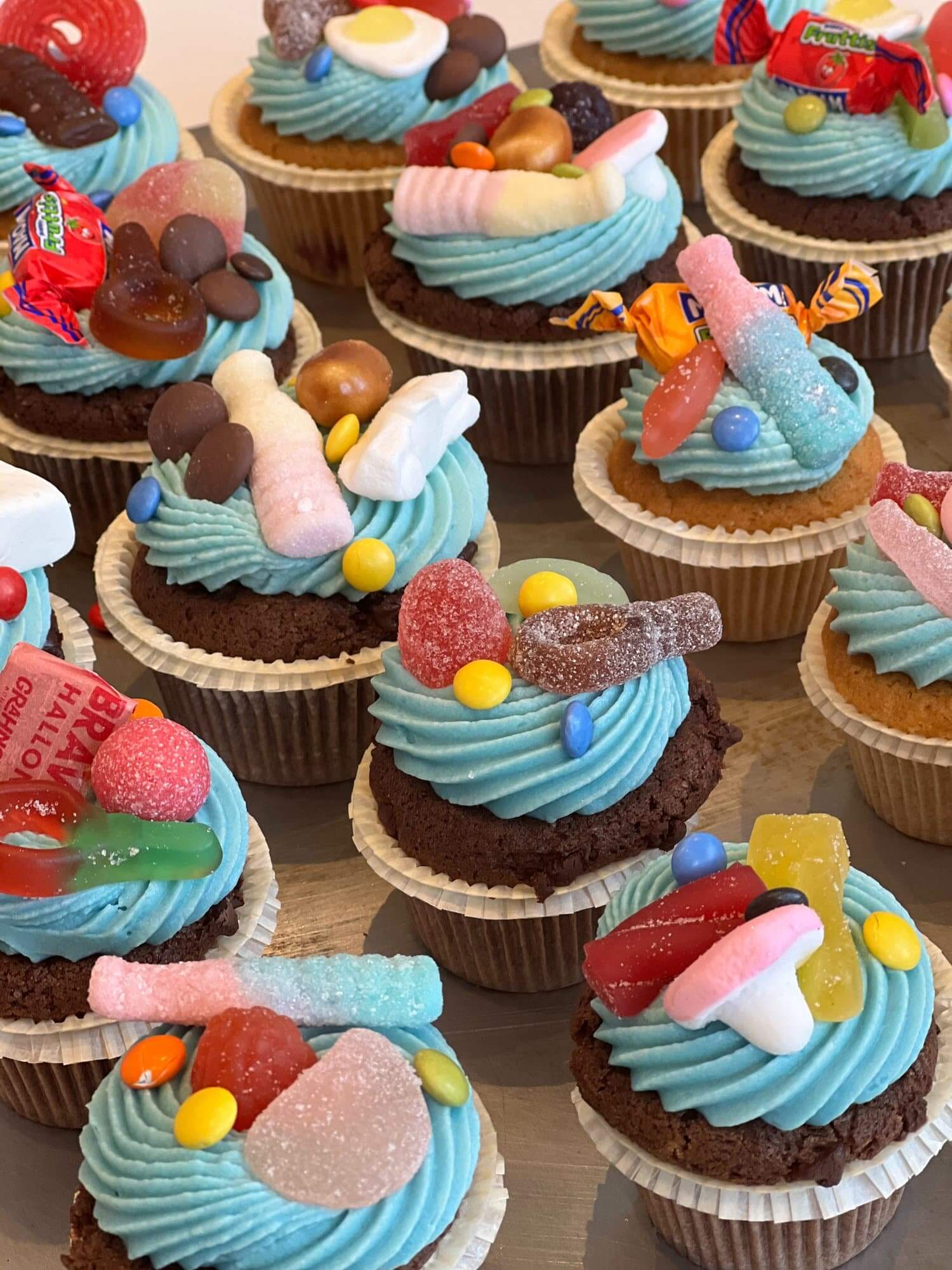 Våra cupcakes är saftiga, smakrika och dekorerade med omsorg. Du kan välja mellan klassiska smaker som vanilj/hallon, choklad eller choklad/hallon, med vanilj- eller chokladfrosting på toppen. Vi erbjuder både mini och stora cupcakes, med eller utan tema – perfekt till kalas, babyshowers, bröllop eller andra festliga tillfällen. Temacupcakes skapas i samråd med dig, i valfria smaker, färger och dekorationer.